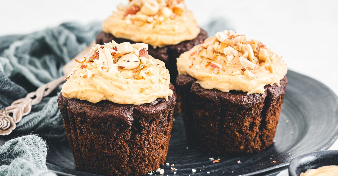 Mafiny vložíme do rúry vyhriatej na 180 °C a pečieme asi 30 minút. Upečené mafiny vytiahneme z rúry a necháme vychladnúť. Do misky dáme mascarpone izbovej teploty, arašidové maslo, cukor a smotanu na šľahanie a vyšľaháme na nadýchanú konzistenciu. Mafin ozdobíme krémom a posypeme kúskami arašidov.