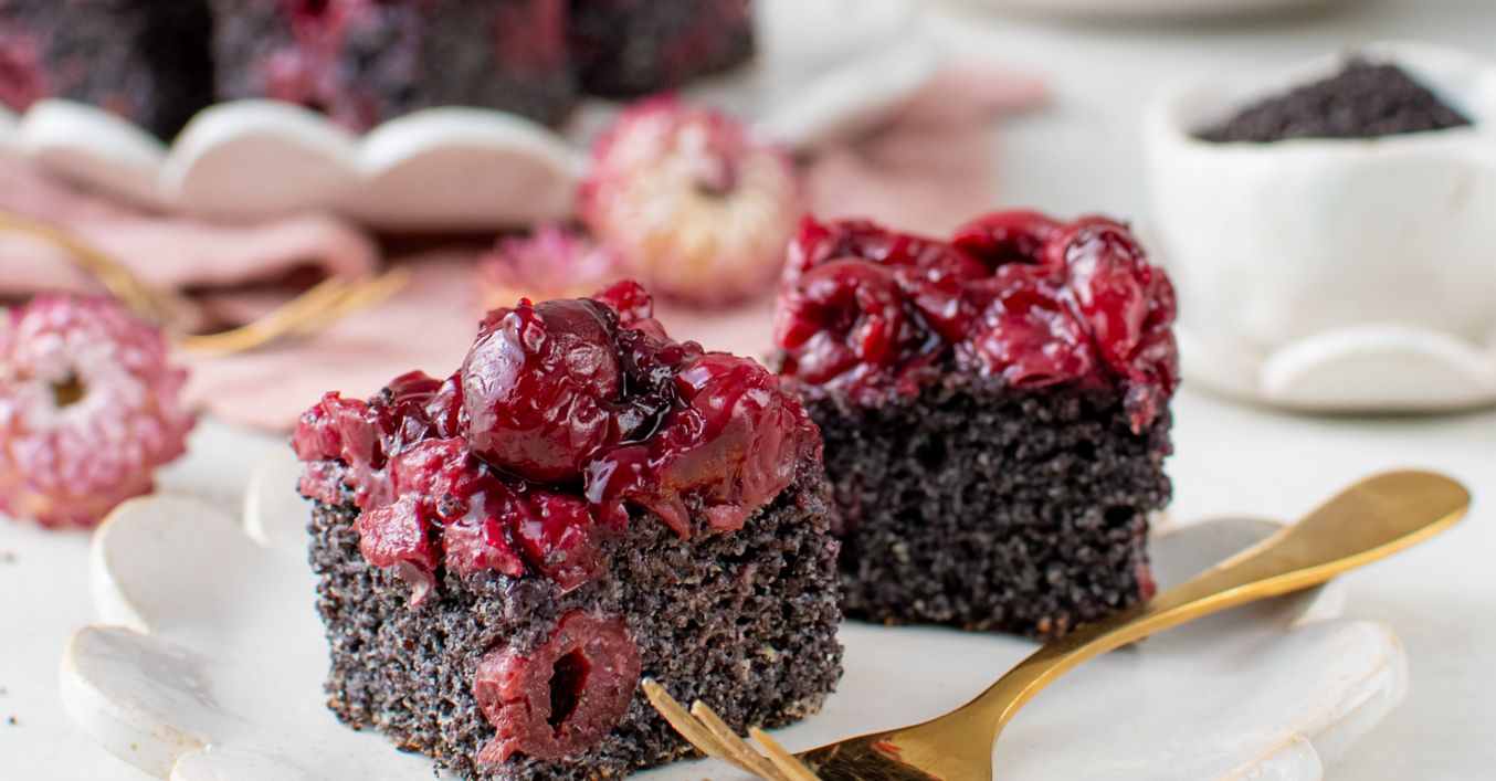 Bezlepkový makový koláč s višňami