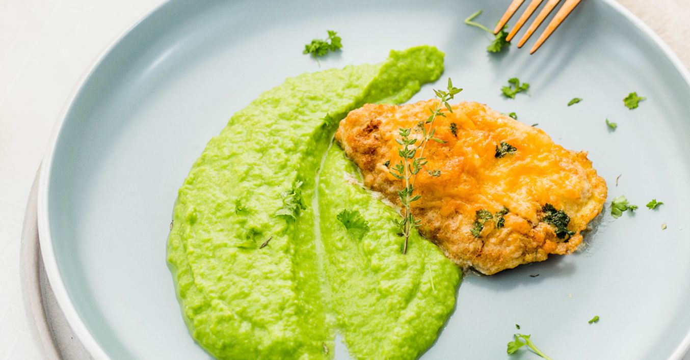 Hrášok uvaríme v osolenej vode, po uvarení vodu zlejeme a hrášok rozmixujeme s trochou mlieka a masla.