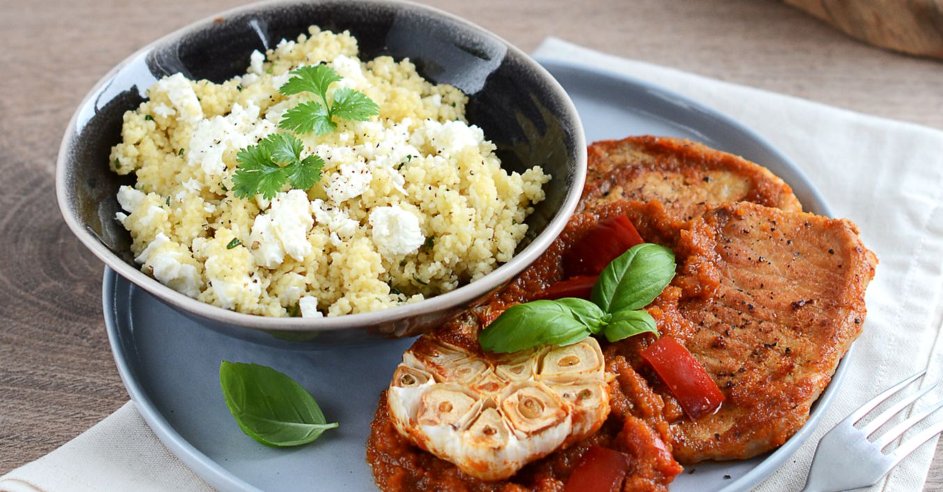 Bravčové na paprike s bylinkovým kuskusom