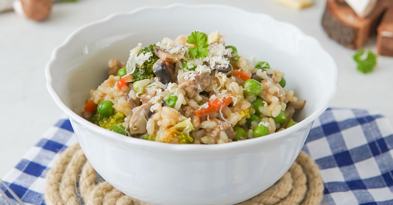 Na tanier naservírujeme hotové rizoto a posypeme strúhaným syrom podľa vlastnej chuti.