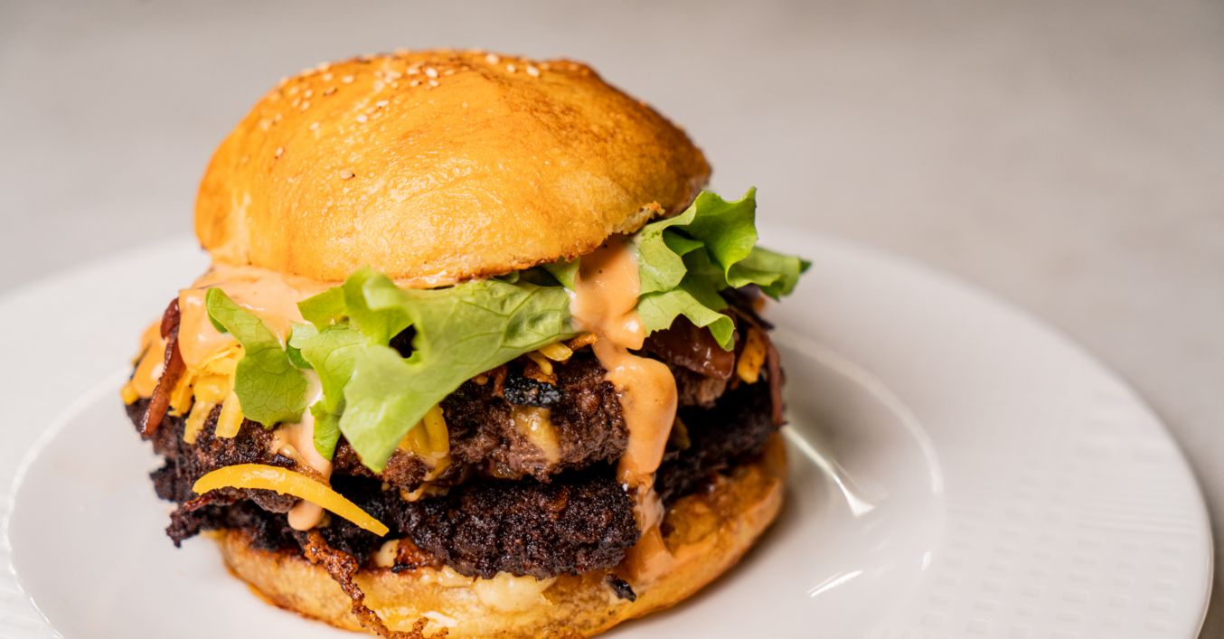 Necháme si zohriať panvicu na burgre. Osmažíme si plátky slaniny a dáme bokom. Na zvyšku tuku smažíme mäsovú zmes, z ktorej sme si urobili menšie placky. Keď je mäso zatiahnuté a opečené z každej strany, pridáme navrch nastrúhaný cheddar a necháme chvíľu zohriať priamo na mäse.
