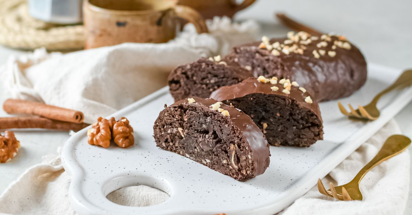 Bochníky dáme na plech vystlaný papierom na pečenie a pečieme pri 180 °C približne 15 minút. Vychladnuté bochníky polejeme čokoládovou polevou, ktorú si pripravíme roztopením 100 g 72% čokolády a 30 g kokosového oleja. Môžeme posypať aj nasekanými orechmi. Keď poleva zatuhne, chlebíčky nakrájame na 1 cm hrubé plátky.