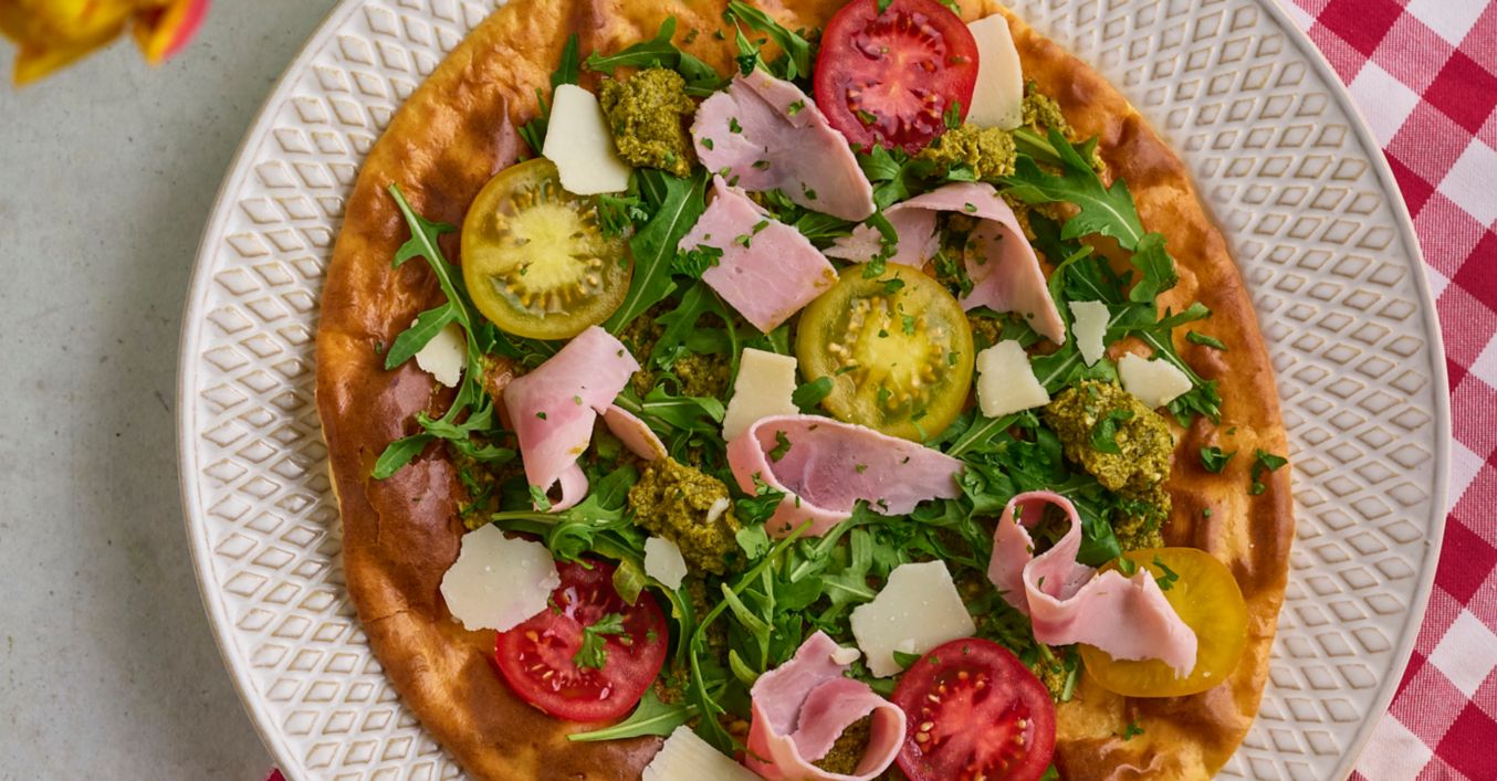 Pomixujeme cottage cheese, vajce, múku, bylinky, soľ a korenie na husté cesto. Cesto vylejeme na plech a pečieme na 200 °C 10 až 15 minút do zlatista. Po upečení potrieme taveným syrom (alebo pestom), obložíme šunkou, syrom a rukolou, zatočíme do tvaru burrita a podávame. (Autorky receptu: Baby na mizine)