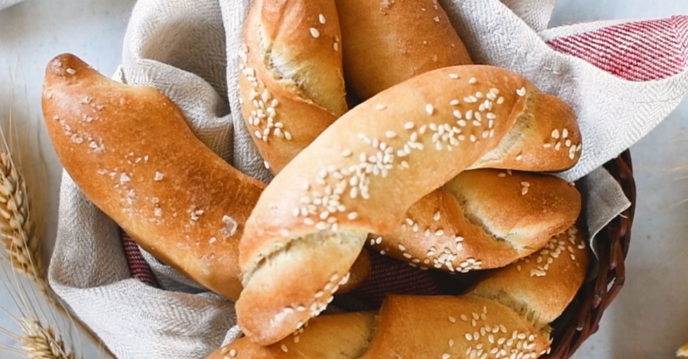Vykysnuté cesto premiesime a vytvarujeme z neho bochníčky s hmotnosťou 60g. Každý bochníček od polovice rozvaľkáme - tak, aby najširšia časť (hore) bola najhrubšia. Zakrútime a rukami rozvaľkáme a natiahneme. Rožky dáme na plech a necháme ešte 30 minút podkysnúť. Potom ich potrieme mliekom a posypeme sezamom alebo morskou soľou. Pečieme pri 200 °C 10-12 minút.