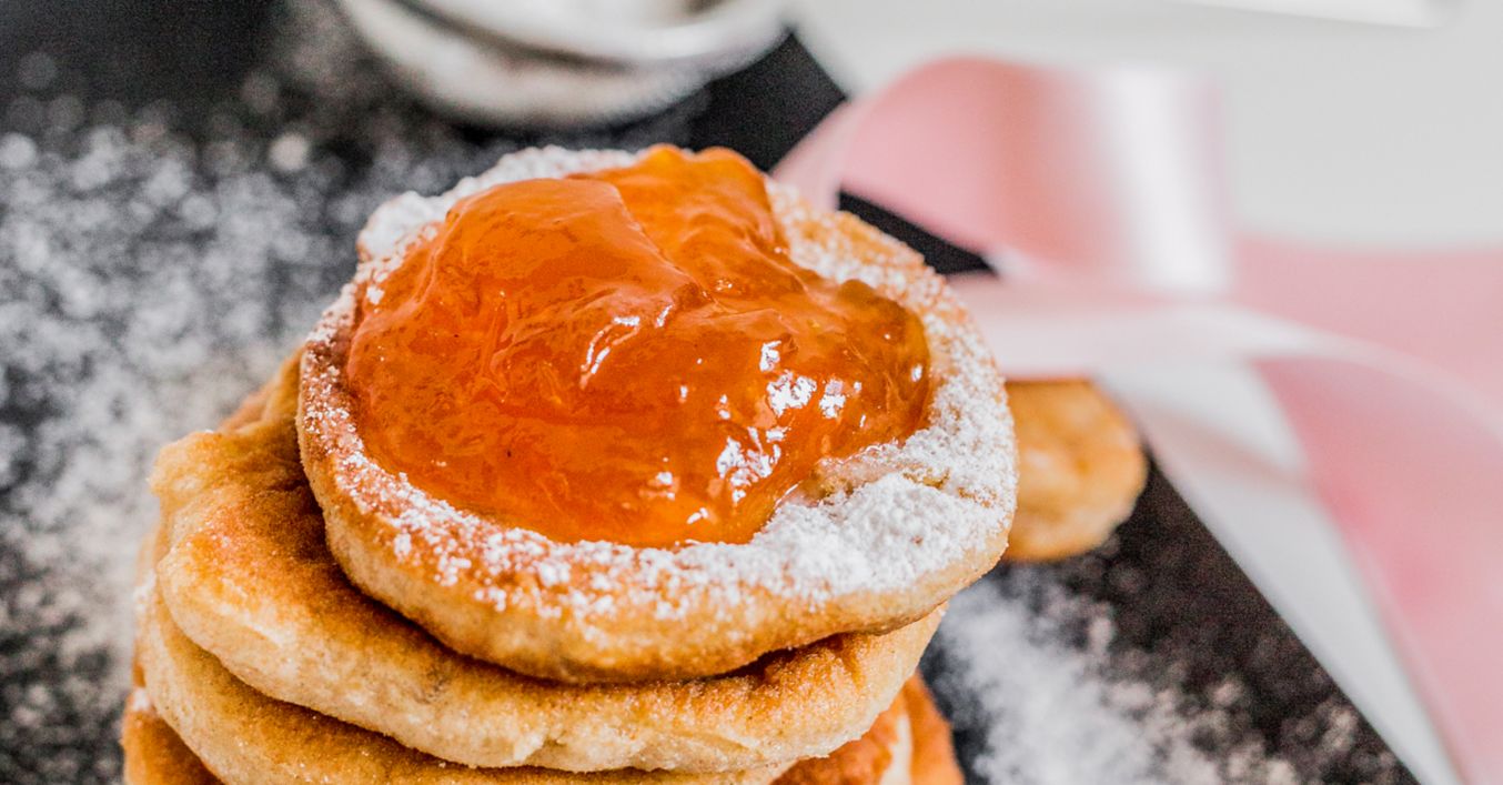Cesto rozvaľkáme na pomúčenej doske na plát hrubý asi 3 mm. Povykrajujeme z neho kolieska, ktoré vysmažíme v horúcom oleji z oboch strán do zlatista. Podávame s marhuľovým džemom.