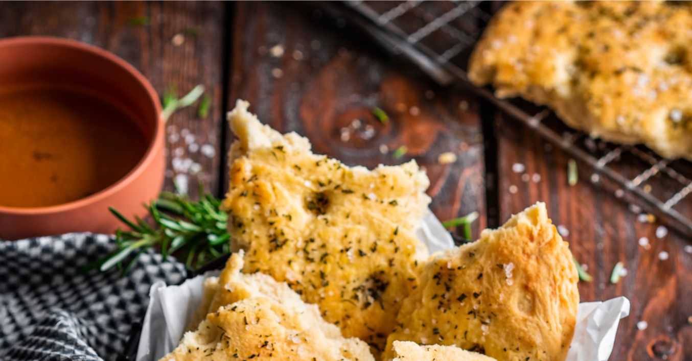 Predhrejeme rúru (horný/dolný ohrev: 225 °C / teplovzdušný ohrev: 200 °C). Rozmarín umyjeme, osušíme a ihličky najemno nakrájame. S opačným koncom lyžice vyrobíme do cesta jamky. Následne potrieme olejom a posypeme soľou a rozmarínom. Focacciu pečieme 15 minút.