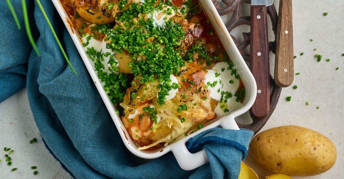 V miske zmiešame smotanu, mlieko, vajce, soľ a korenie a nalejeme na zemiaky. Pečieme 30 minút, posypeme syrom a dopekáme 15 minút do zlatista. Podávame teplé so šalátom či uhorkou. (Autorky receptu: Baby na mizine)