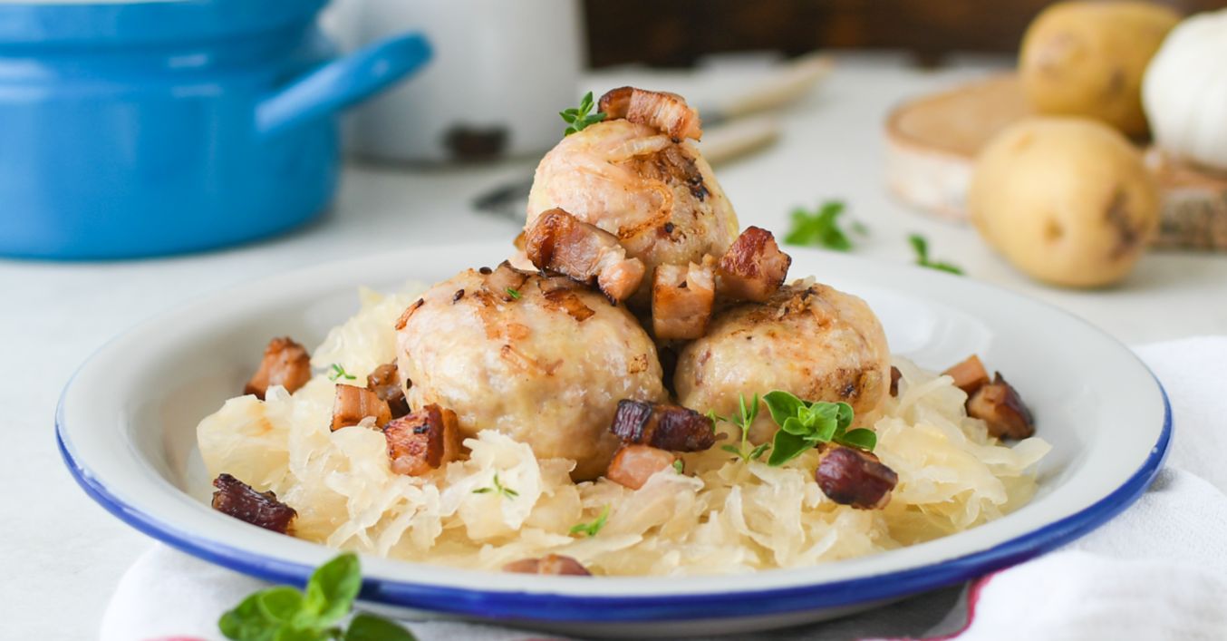 Údenú slaninku pokrájame na menšie kocky, opražíme. Uvarené guľky polejeme vyškvarenou masťou, posypeme škvarkami a obložíme pokrájanou kyslou kapustou. Navrch rozložíme pokrájanú cibuľu opraženú v rozohriatej masti dozlatista.
