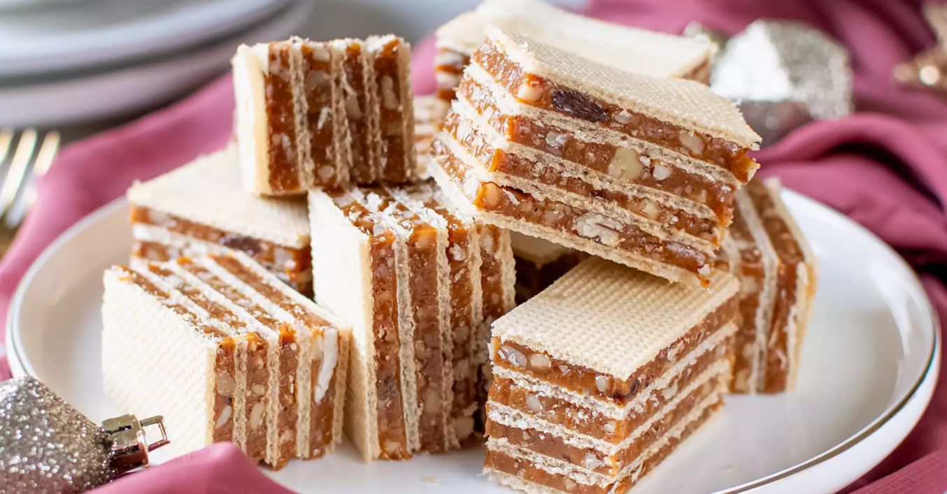 Nachystáme si 5 tortových oblátok. Na každú vrstvu dáme približne 3-4 polievkové lyžice karamelovej plnky tak, aby sme pokryli celú oblátku. Grilážku dáme na papier na pečenie a zabalíme. Zaťažíme (môžeme napríklad dvomi baleniami mlieka) a dáme do chladničky na niekoľko hodín. Po vychladnutí nakrájame na úhľadné kúsky.