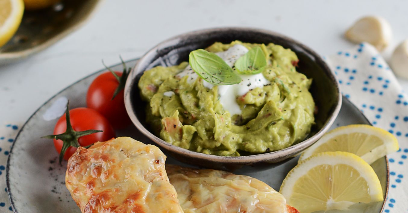 Kým sa prsia pečú pripravíme si guacamole. Avokádo rozmixujeme spolu cibuľou a cesnakom. Pridáme nadrobno nakrájané paradajky, bazalku a dochutíme extra panenským olivovým olejom, soľou a čiernym korením. Podávame s kopčekom bieleho jogurtu.