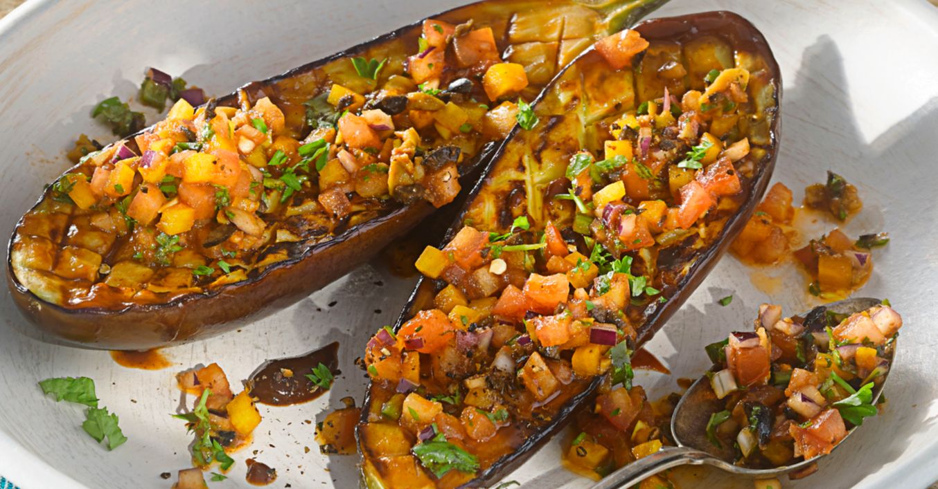 Grilovaný baklažán s olivovo-paradajkovou salsou