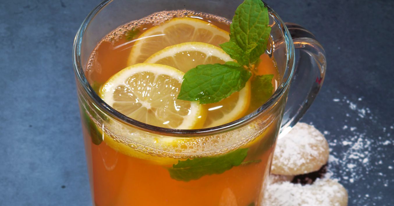 Biele víno, citrónovú kôru a šťavu a 8 vetvičiek mäty zohrejeme, ale nevaríme. Vmiešame bazový sirup a zohrievame ešte tri minúty.
