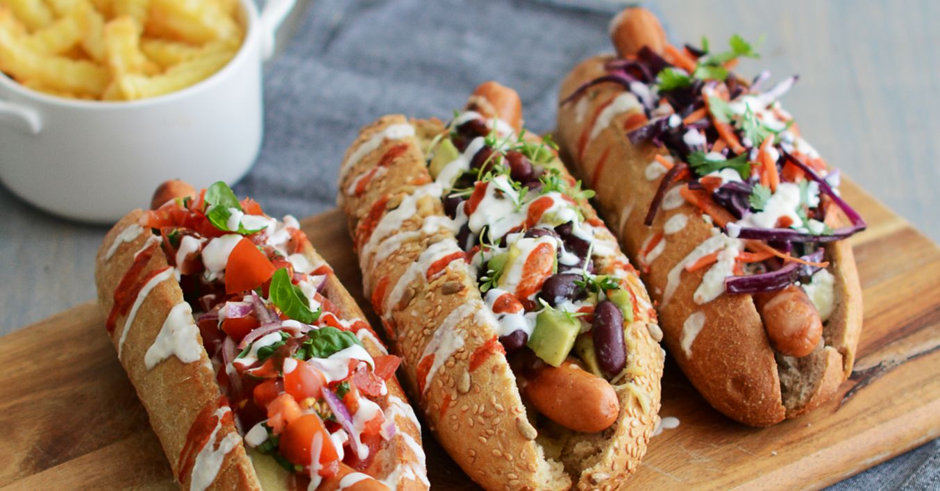 Rožky vyberieme z rúry. Na nivový dáme kapustovú zmes, na mozzarellový paradajkovú zmes a na cheddarový avokádovú zmes. Všetky posypeme čerstvými bylinkami, napríklad koriandrom, bazalkou či žeruchou. Nakoniec pokvapkáme dresingom a čili omáčkou. Podávame s hranolčekmi.
