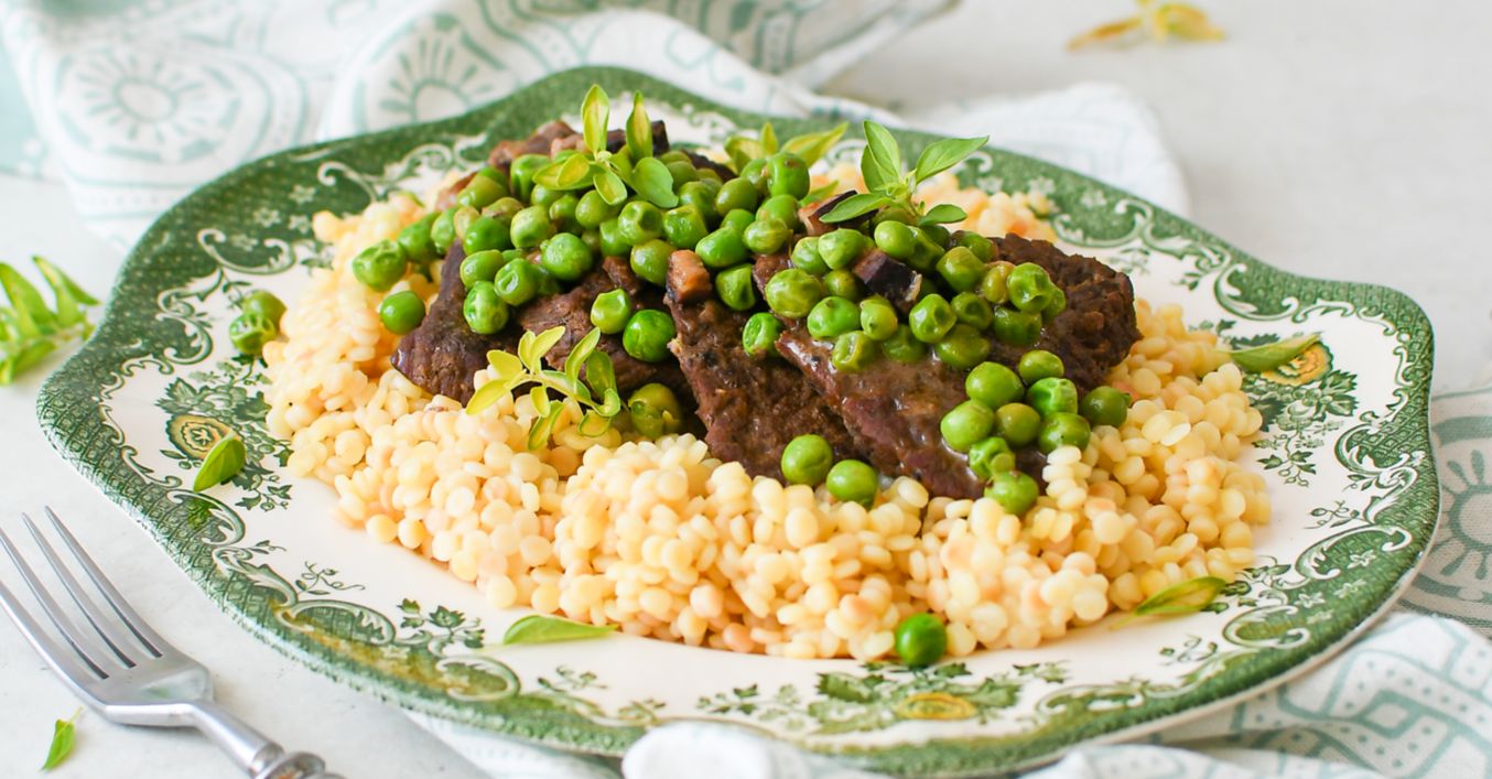 Ku koncu dusenia pridáme scedený hrášok, horčicu a osolíme, ochutíme vegetou a spolu povaríme. Nakoniec zahustíme múkou. Podávame s tarhoňou.