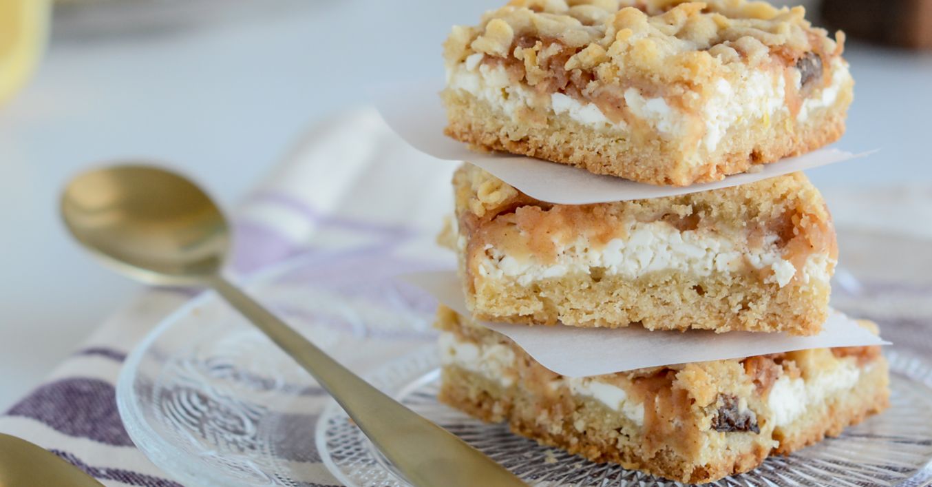 Z ingrediencií vypracujeme elastické cesto, ktoré dáme aspoň na hodinu do chladničky. Tvaroh zmiešame s vajíčkami, cukrom, hrozienkami a kôrou. Jablká ošúpeme a nastrúhame. Prebytočnú šťavu zlejeme, dochutíme citrónovou šťavou, škoricou a cukrom.
