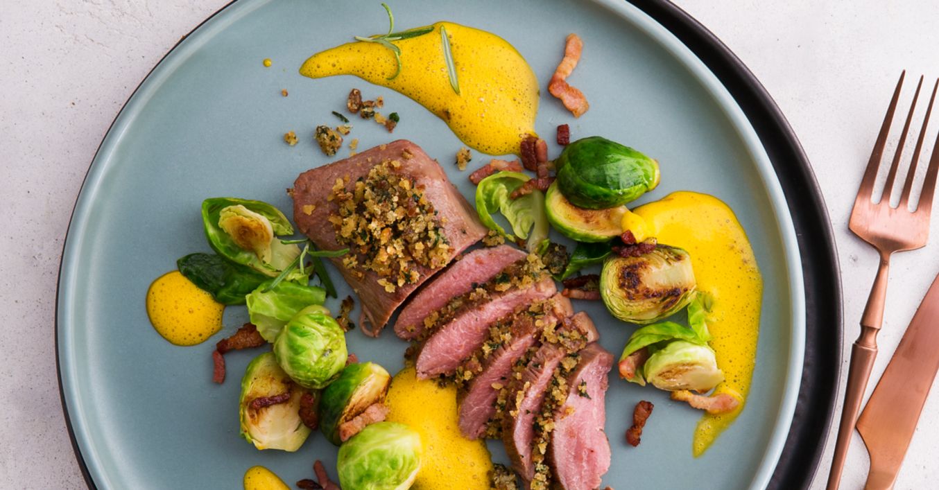 Jahňacie so strúhankovou krustou a mrkvovou penou