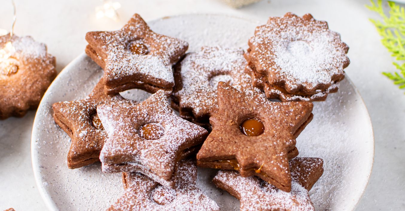 Do misky dáme múku, 200 g masla izbovej teploty, cukor, vajce a žĺtok, vanilkový cukor, 1 kypriaci prášok do pečiva, 2 kopcovité polievkové lyžice kakaa a štipku soli. Vypracujeme hladké cesto, dáme ho na potravinársku fóliu, urobíme placky, zabalíme a dáme aspoň na hodinu do chladničky.