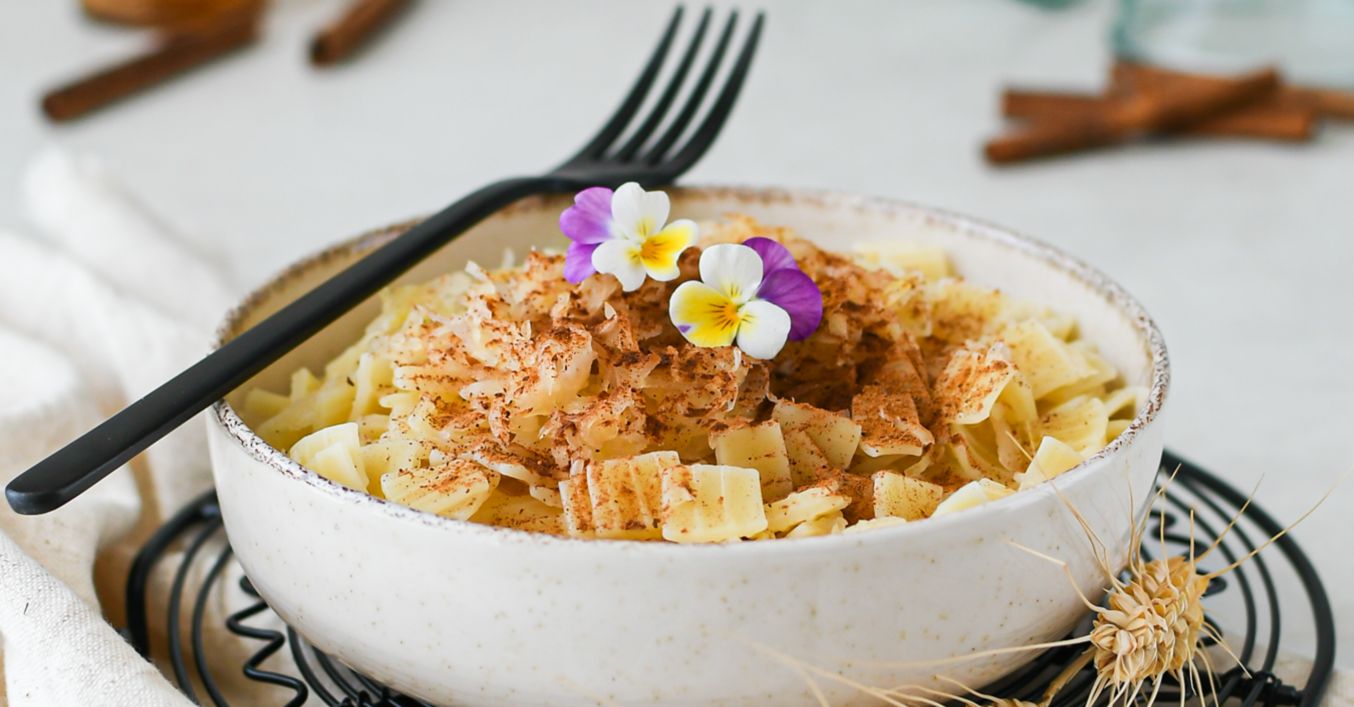Medzitým si uvaríme v osolenej vriacej vode fliačky. Keď ich scedíme, omastíme ich rozpusteným maslom. Primiešame udusenú kapustu a na tanieri posypeme škoricovým cukrom.