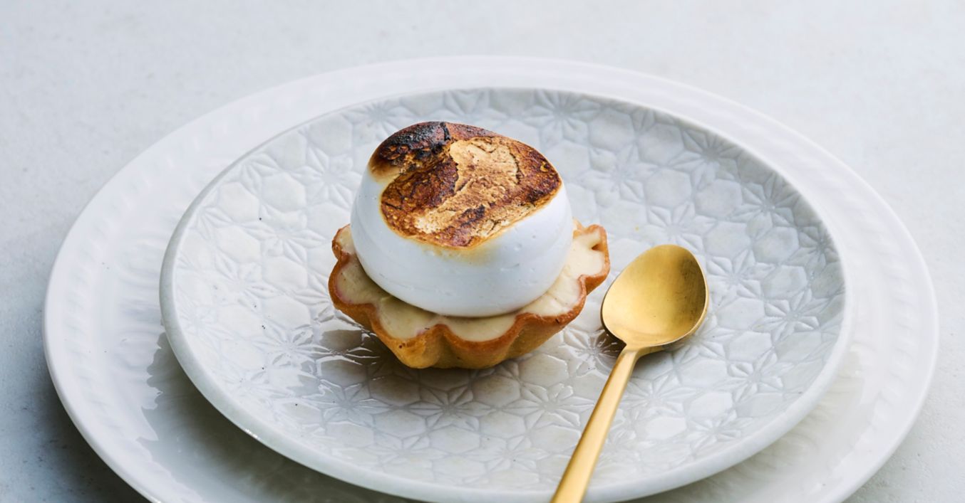 Švajčiarsky meringue si pripravíme tak, že bielky zmiešame s cukrom a nad vodnou parou ich zohrejeme na 60 °C. Zmes prenesieme do mixéra a šľaháme asi 5 minút. Meringue dáme na vrch košíčka a opálime flambovačkou alebo extra rozžeraveným uhlíkom.
