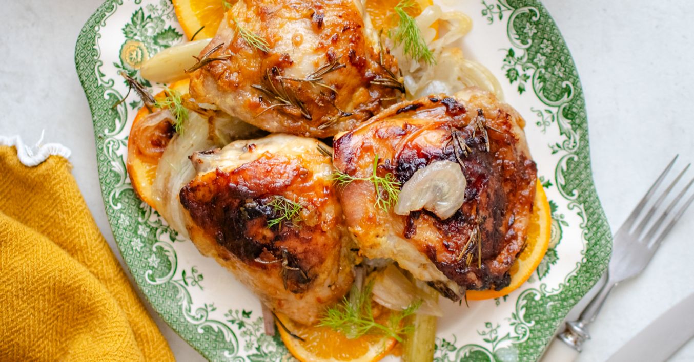 Kuracie stehná na pomarančoch a fenikli