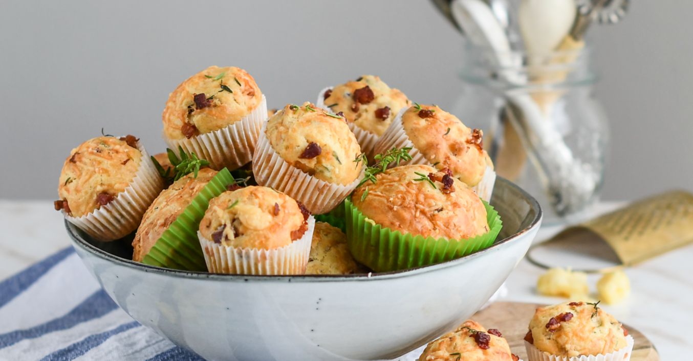 Mafiny s cibuľkou, mozzarellou, tymianom a slaninou
