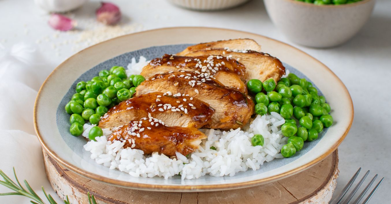 Kuracie prsia osušíme, osolíme a okoreníme z oboch strán. Nerezovú panvicu rozpálime. Správnu teplotu vieme určiť tak, že keď ju pokropíme pár kvapkami vody, urobia sa z nich akoby poskakujúce guľôčky. Trvá to približne 5 minút. Keď máme dobre zohriatu panvicu, dáme na ňu olivový olej a kuracie prsia. S prsiami niekoľko minút nehýbeme, kým sa opečú a samé odlepia od panvice. Zopakujeme to aj z druhej strany. Potom prsia opekáme a potierame marinádou niekoľko minút. Zvyšnú marinádu, čo nám zostala v miske, zmiešame s troškou vody a pridáme ku kuracím prsiam - dávame pozor, bude to prskať.