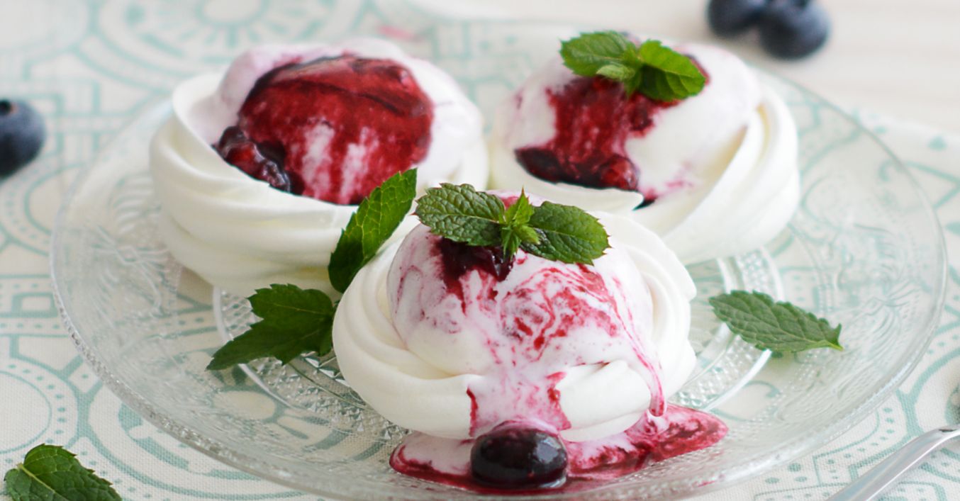 Mini Pavlove so zmrzlinou a horúcim lesným ovocím