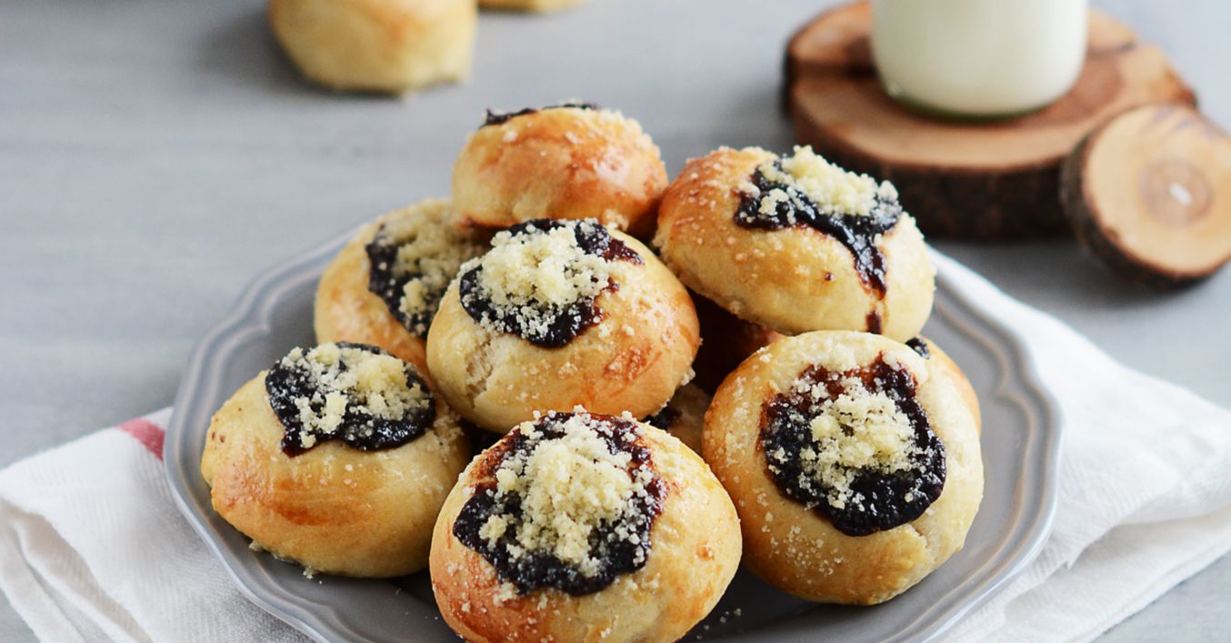 Nachystáme si plech s papierom na pečenie, rúru predhrejeme na 170 °C. Ruky si potrieme trochou masla alebo oleja a z vykysnutého cesta si odoberáme hrudky o veľkosti vlašského orecha.