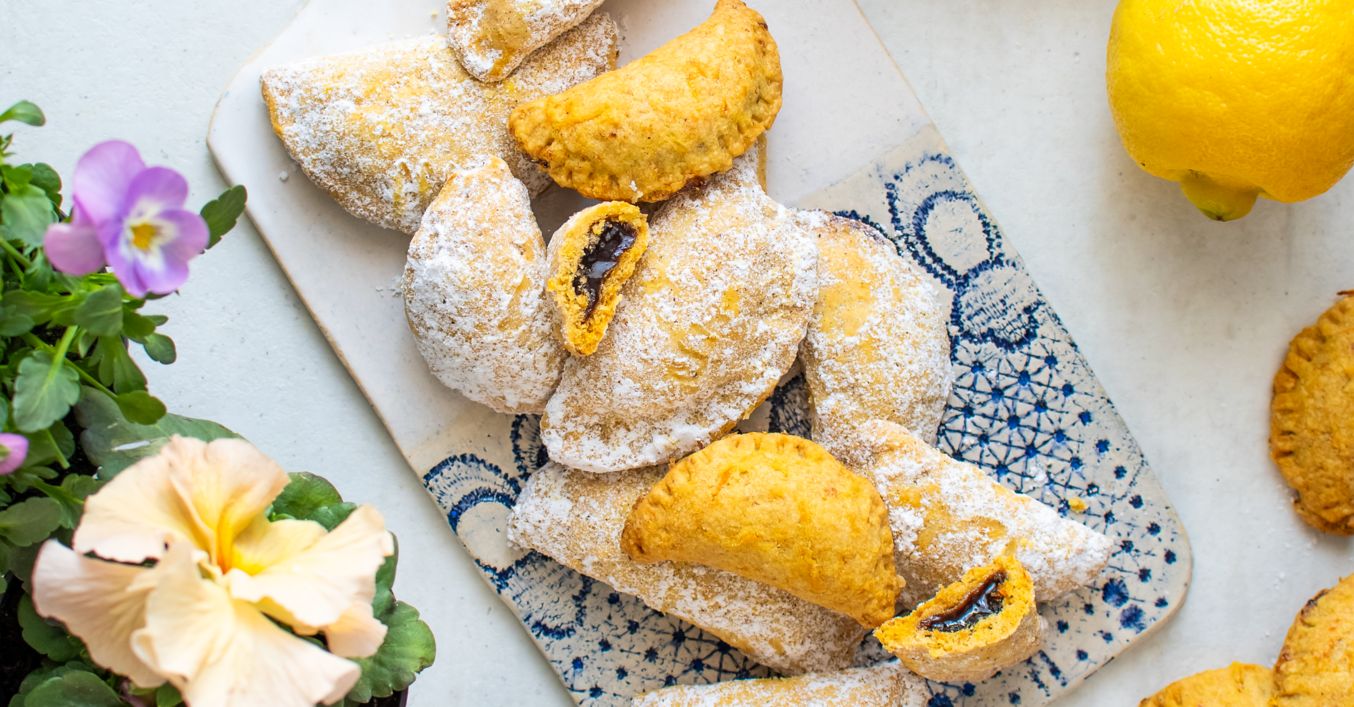Medzitým si predhrejeme rúru na 175 °C. Odstáte cesto vyvaľkáme na pomúčenej doske a okrúhlym vykrajovadlom vykrajujeme kruhy. Do stredu každého dáme asi jednu lyžičku lekváru, potom ich zatvoríme a kraje zatlačíme vidličkou. Taštičky pečieme, kým nemajú na povrchu zlatohnedú farbu, približne 15 až 20 minút, pričom ich priebežne kontrolujeme. Ešte teplé ich obalíme v zmesi vanilkového a práškového cukru.