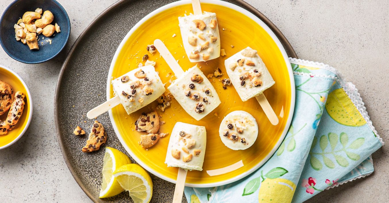 Smotanu vyšľaháme a spolu s kešu orieškami zamiešame do jogurtovej masy. Rozdelíme do 6 pohárikov, zapichneme paličku a na minimálne 4 hodiny, ideálne na noc, vložíme do mrazničky. 15 minút pred podávaním vyberieme z mrazničky a vložíme do chladničky, vyberieme z pohárikov a podávame.