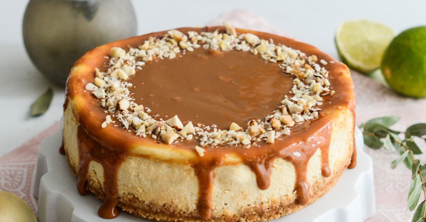 Vychladnutý cheesecake dozdobíme uvareným salkom a nasekanými orieškami.