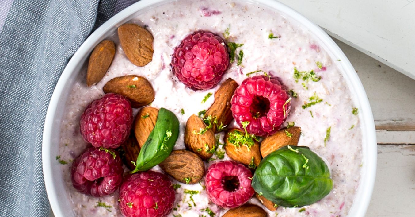 Ovsená kaša s malinami a bazalkou