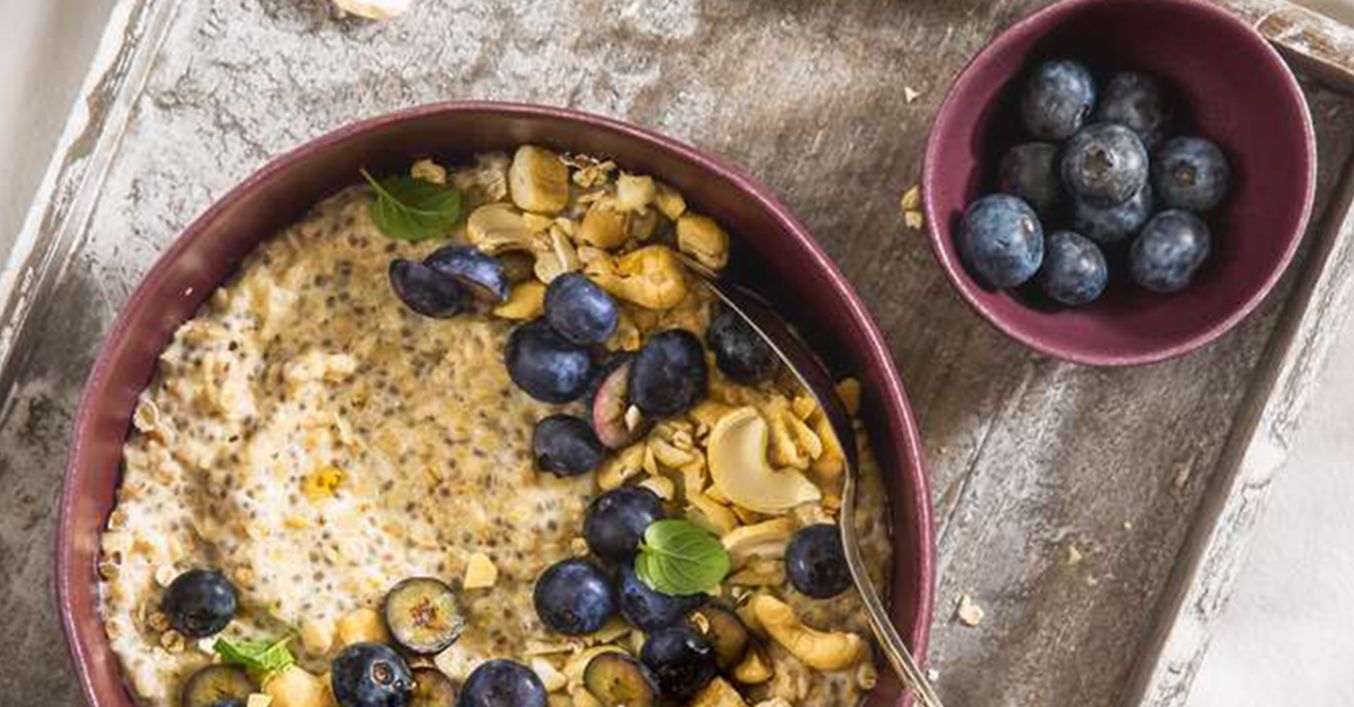 Ovsené vločky s kešu a čučoriedkami