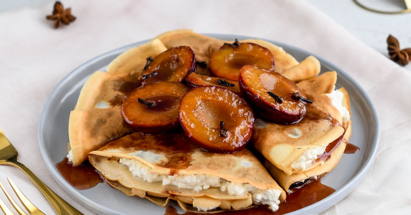 Palacinky s tvarohom a skaramelizovanými slivkami