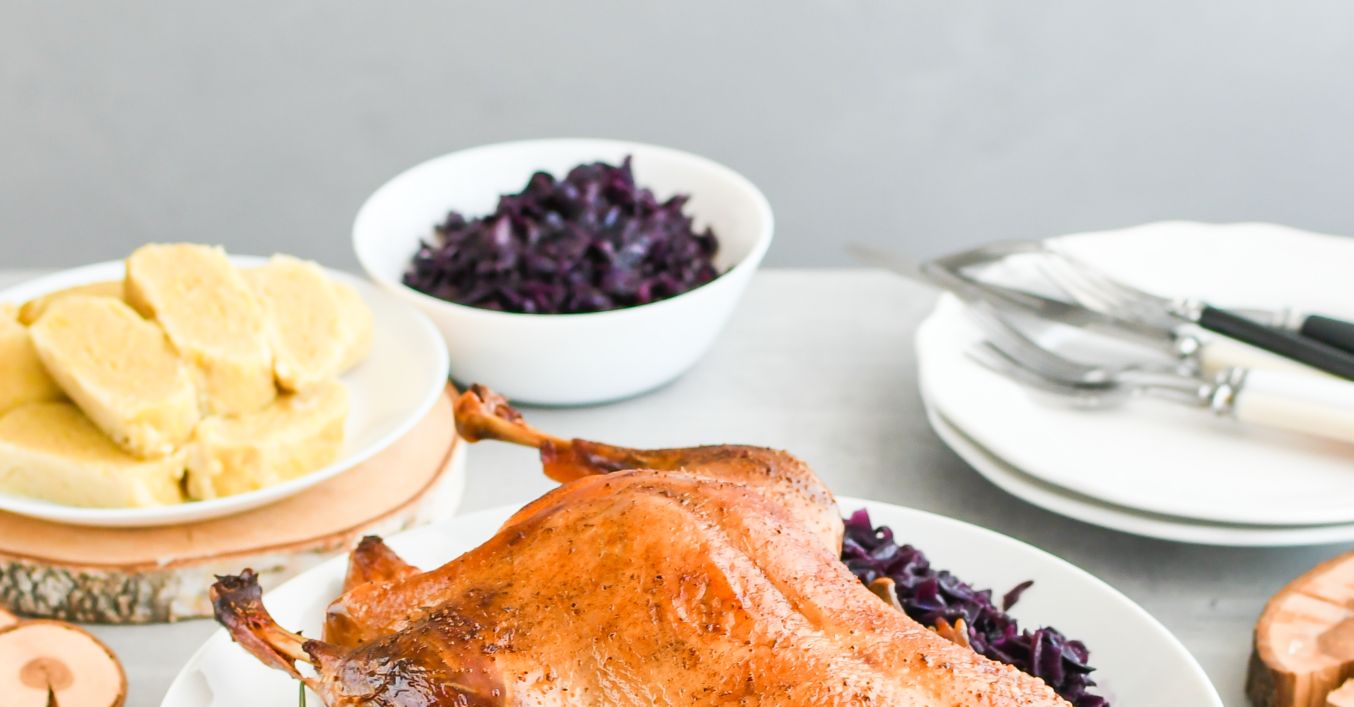 Pečená kačica s dusenou kapustou a zemiakovou knedľou