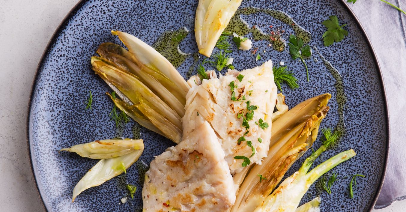 Filé z tresky umyjeme, osušíme, zbavíme kostičiek a naporciujeme. Fenikel umyjeme, osušíme a nakrájame na štvrtiny. Čakanku umyjeme, osušíme a po dĺžke rozkrájame na štvrtiny.