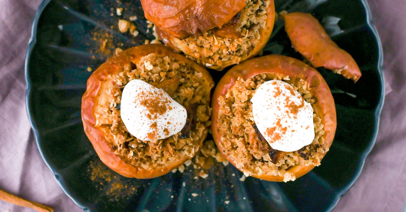 V kuchynskom robote rozmixujeme dokopy ovsené vločky, cukor, brusnice, oriešky a maslo. Dochutíme škoricou. Takouto zmesou naplníme jabĺčka a pečieme ich pri 180 °C približne 30 minút.