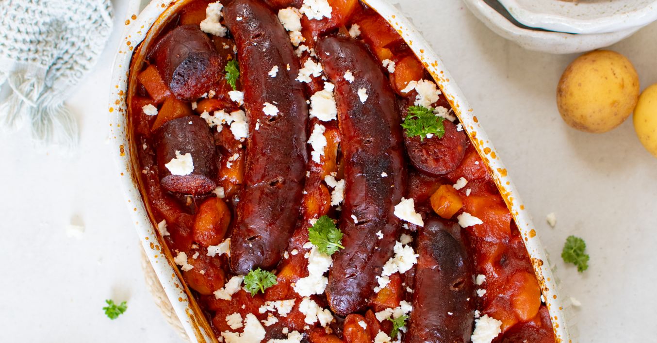 Pečené klobásky vo fazuľovej omáčke