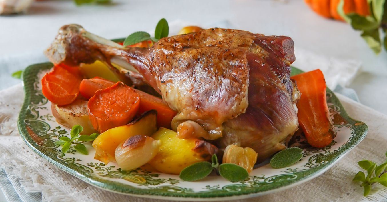 Pečené morčacie stehná na koreňovej zelenine