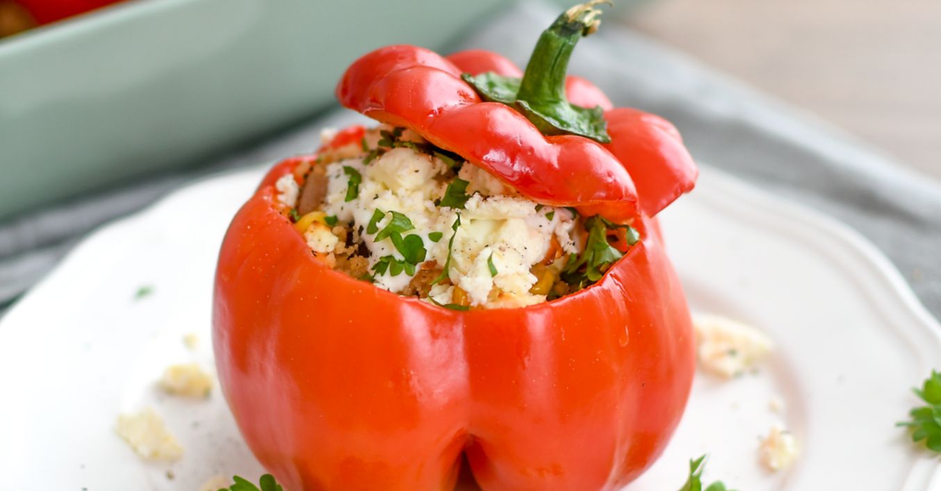 Na paprikách opatrne odkrojíme vrch a vyberieme jadierka. Papriky naplníme kuskusom, posypeme trochou syra, pokvapkáme olejom a pečieme pri 180 °C približne 40 minút. Podávame posypané zvyšným balkánskym syrom, korením a bylinkami.