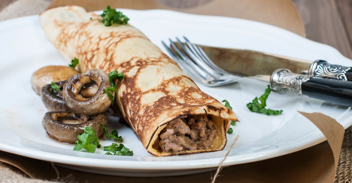 Hotové palacinky naplníme mäsovou zmesou, zavinieme a podávame. Pred podávaním môžeme posypať nadrobno nakrájanou petržlenovou vňaťou.