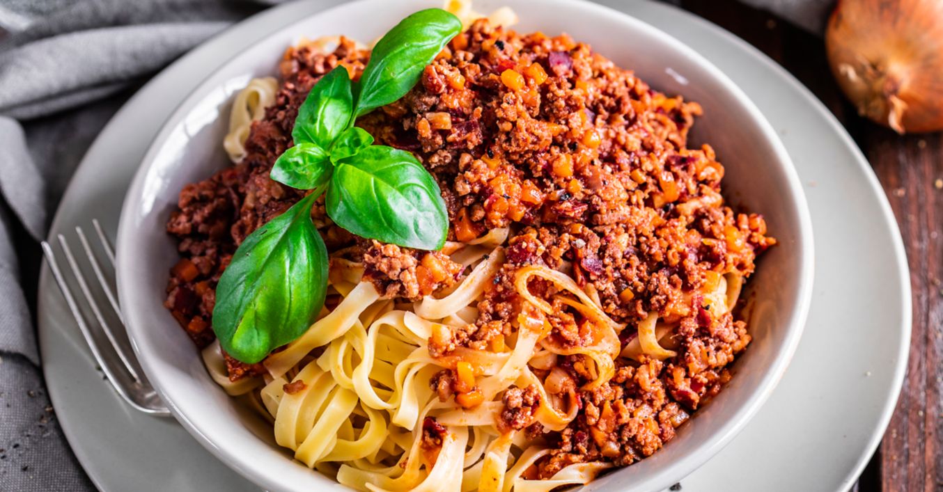 Medzitým si pripravíme Tagliatelle v osolenej vode podľa návodu na obale. Bazalku umyjeme, osušíme a odtrhneme lístky. Cestoviny s Ragù alla Bolognese servírujeme dozdobené bazalkou.