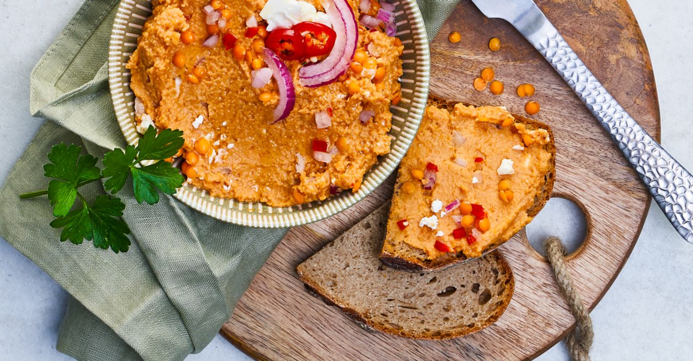 Feta syr najemno rozmrvíme. Cibuľu ošúpeme a nakrájame na drobno. Čili umyjeme, osušíme, pozdĺžne prekrojíme, jadierka vyberieme a nakrájame nadrobno. Všetko zmiešame so šošovicovou zmesou a ochutíme soľou a korením. Odložíme na chladné miesto a necháme aspoň 8 hodín odležať. Nátierku podávame s chlebom.