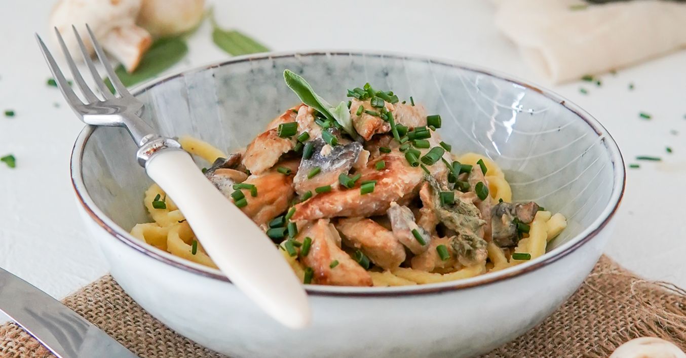 Spätzle s bravčovým mäsom a šampiňónmi