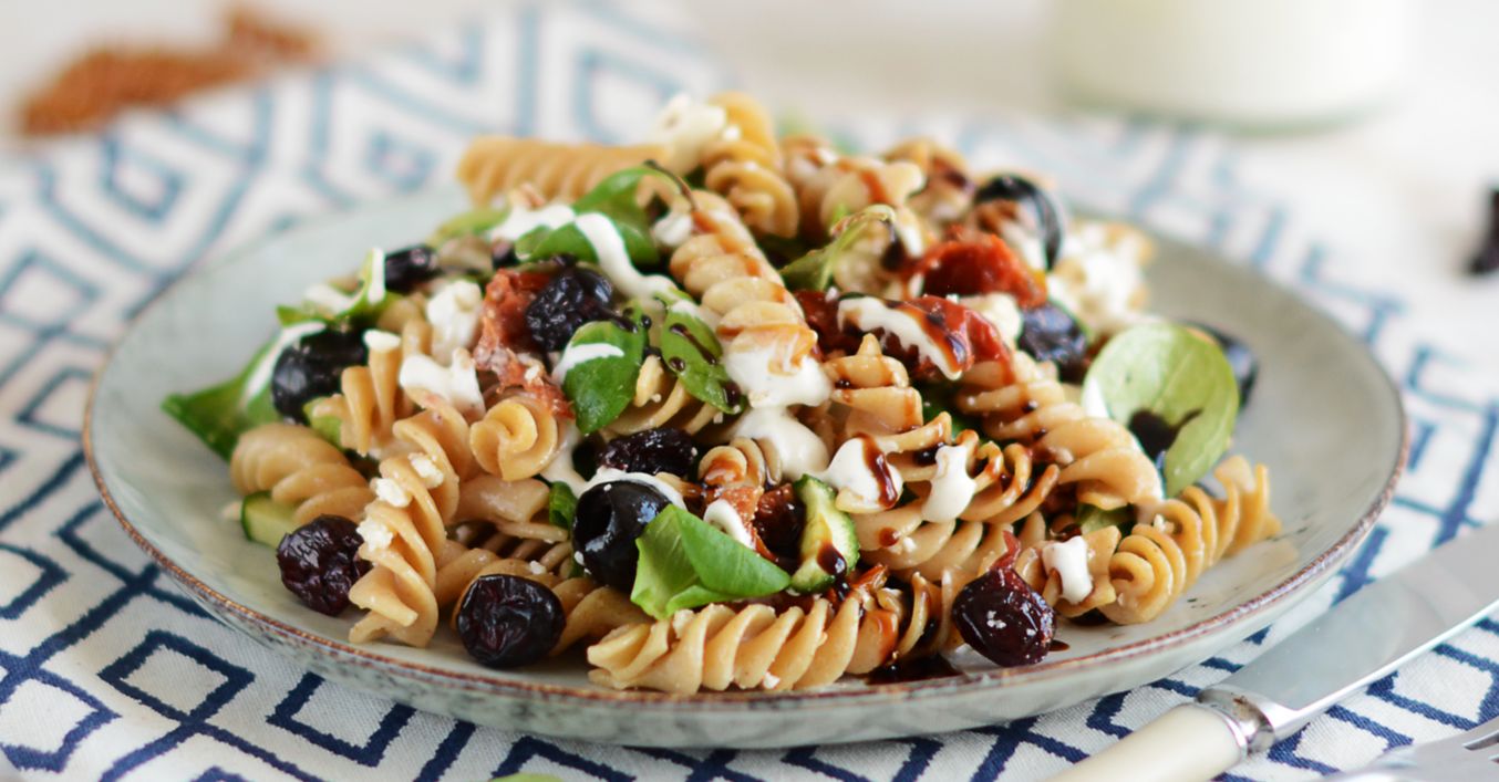 Studený cestovinový šalát so zeleninou, syrom a dresingom