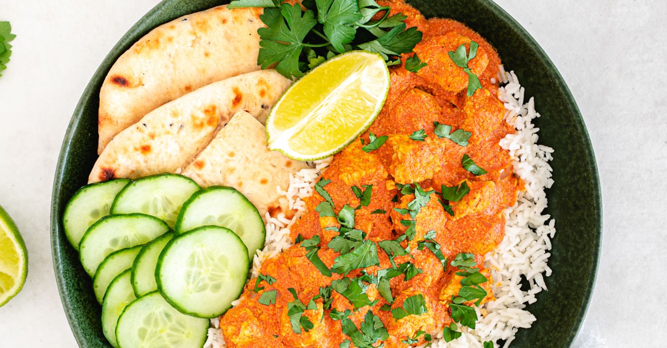 Na záver vlejeme do omáčky kokosové mlieko a chvíľku povaríme. Podľa potreby ochutíme soľou, čiernym korením a šťavou z limetky. Omáčku podávame s uvarenou ryžou basmati (ryžu varíme v pomere 1 diel ryže na 1,5 dielu vody), nasekanou petržlenovou vňaťou, štvrtinou limetky a s čerstvými plátkami uhorky. Ak chcete jedlu dodať ešte väčšiu autenticitu, pridajte k omáčke aj indický chlieb naan.