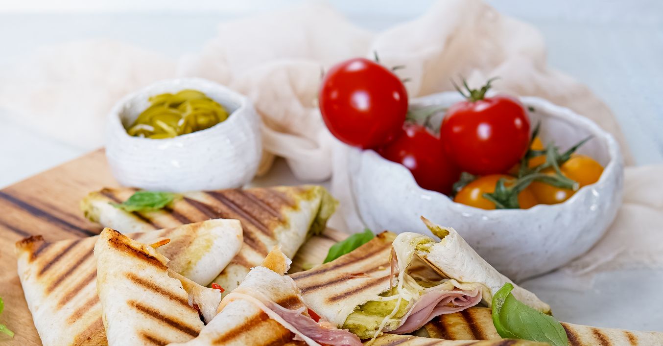 Polovicu tortillovej placky potrieme pestom alebo ajvarom. Potom na spodnú tretinu dáme trochu mozzarelly, pridáme paradajky a suchú salámu. Opäť trochu mozzarelly. Okrúhlu stranu tortilla placky asi v 2 cm prehneme. Poskladáme ju po tretinách do trojuholníka a posledný okraj zasunieme pod preloženú placku. Vytvoríme tak kapsičku.