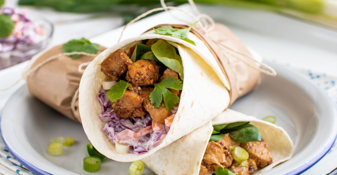 Tortilovú placku potrieme nátierkovým maslom. Potom naň dáme trochu rukoly alebo šalátu poľníčka, navrstvíme mäso a nakoniec kapustový šalát. Opatrne zabalíme a servírujeme.
