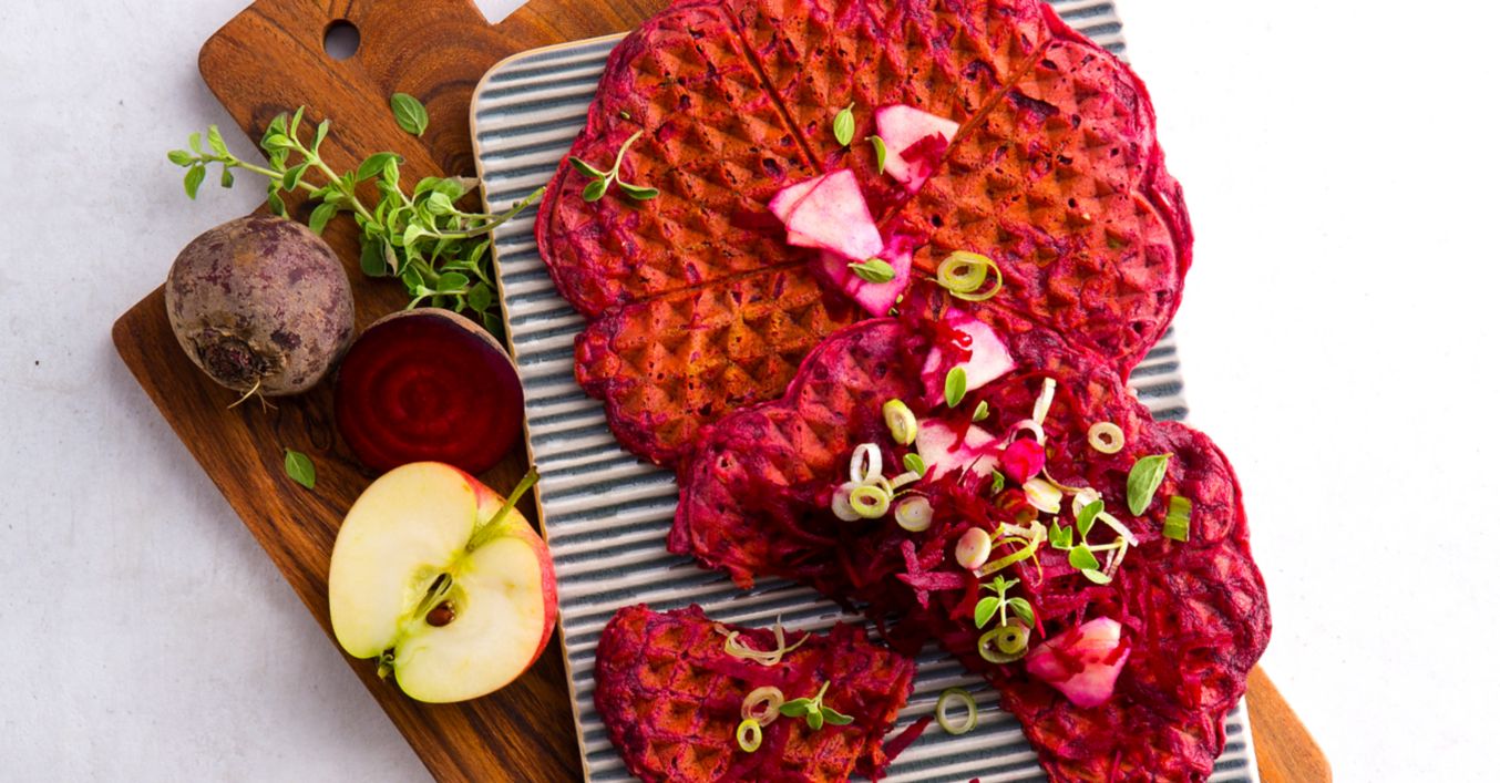 Surovú zeleninu ochutíme jablčným octom, olejom z vlašských orechov, soľou a čiernym korením a podávame s teplými vafľami.
